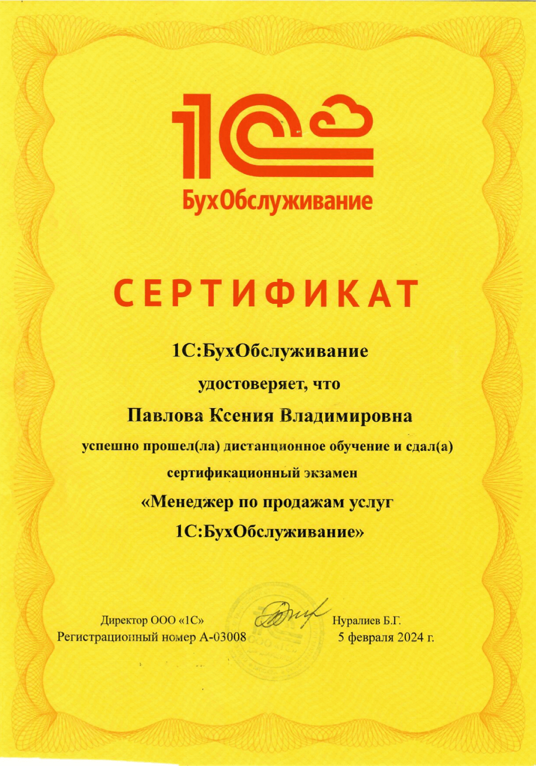 - Директор отдела продаж Павлова К.В.